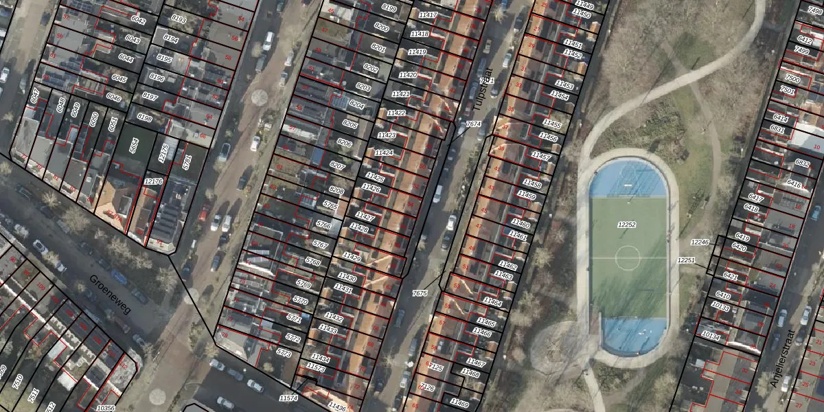 Gebruik de zoekbalk of klik op een perceel voor informatie over de adressen binnen dit perceel.