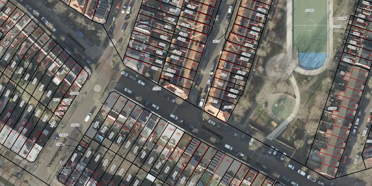 Gebruik de zoekbalk of klik op een perceel voor informatie over de adressen binnen dit perceel.