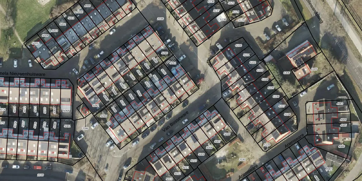 Van Bosseware 15 is gelegen op kadastraal perceel ZLE00L5092. Deze kadastrale aanduiding is uniek en wordt gebruikt door het Kadaster om eigendomsrechten en andere zakelijke rechten vast te leggen. Het perceel maakt onderdeel uit van de kadastrale gemeente Zwolle.