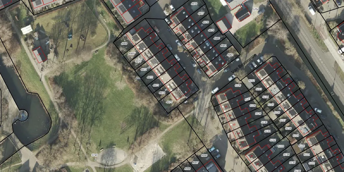 Van Bosseware 21 is gelegen op kadastraal perceel ZLE00L4974. Deze kadastrale aanduiding is uniek en wordt gebruikt door het Kadaster om eigendomsrechten en andere zakelijke rechten vast te leggen. Het perceel maakt onderdeel uit van de kadastrale gemeente Zwolle.