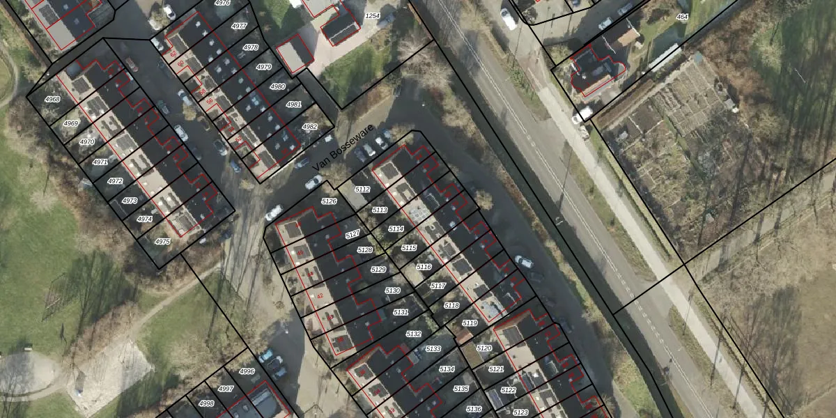 Het perceel waarop Van Bosseware 68 staat heeft een oppervlakte van 138 m². Dit is een middelgroot perceel. De perceeloppervlakte wordt geregistreerd door het Kadaster. Gedetailleerde informatie over de maten van dit perceel kunt u vinden in het rapport Kadastrale kaart met maatvoering van Van Bosseware 68.