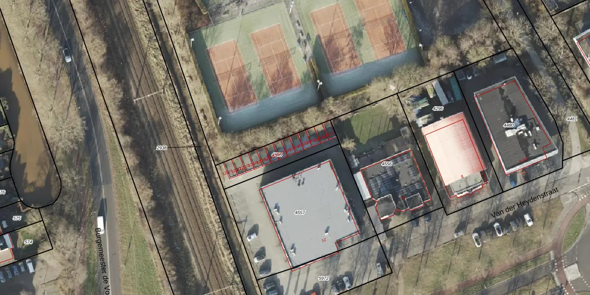 Het perceel waarop Van der Heydenstraat 12-G-9 staat heeft een oppervlakte van 363 m². Dit is een groot perceel. De perceeloppervlakte wordt geregistreerd door het Kadaster. Gedetailleerde informatie over de maten van dit perceel kunt u vinden in het rapport Kadastrale kaart met maatvoering van Van der Heydenstraat 12-G-9.