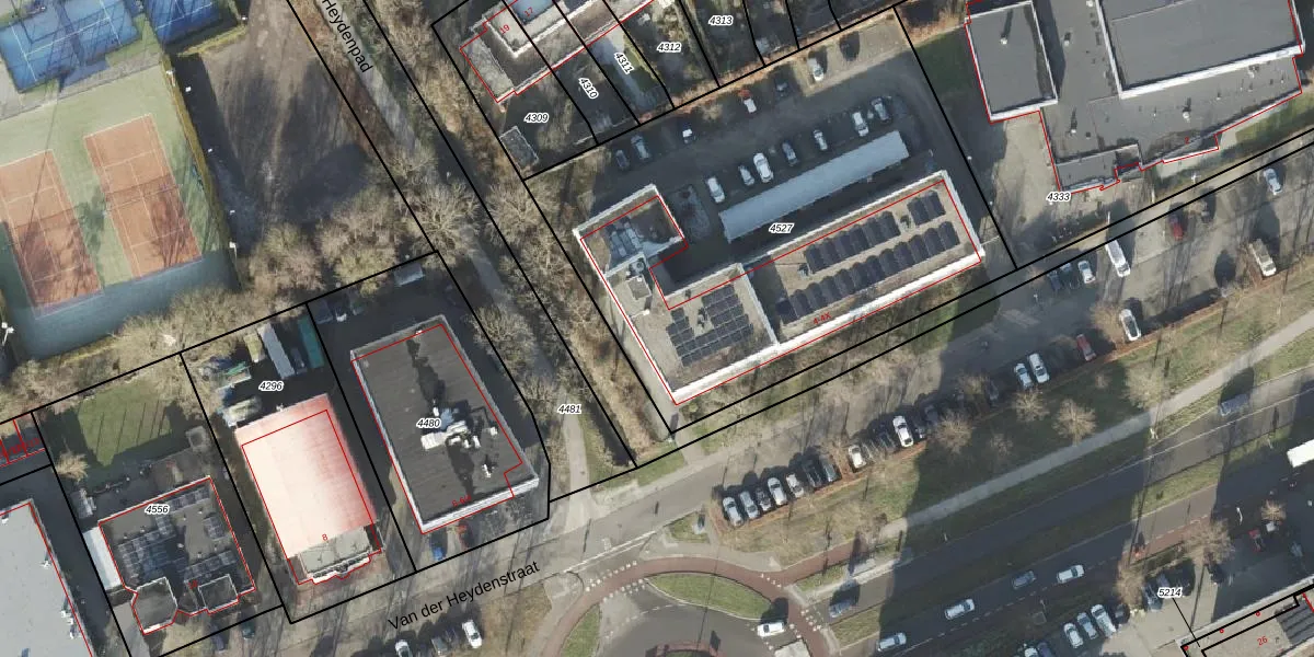 Het perceel waarop Van der Heydenstraat 4-Q staat heeft een oppervlakte van 2675 m². Dit is een zeer groot perceel. De perceeloppervlakte wordt geregistreerd door het Kadaster. Gedetailleerde informatie over de maten van dit perceel kunt u vinden in het rapport Kadastrale kaart met maatvoering van Van der Heydenstraat 4-Q.