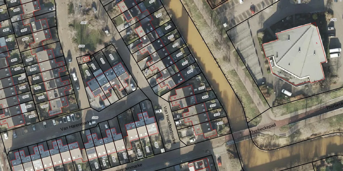 Gebruik de zoekbalk of klik op een perceel voor informatie over de adressen binnen dit perceel.