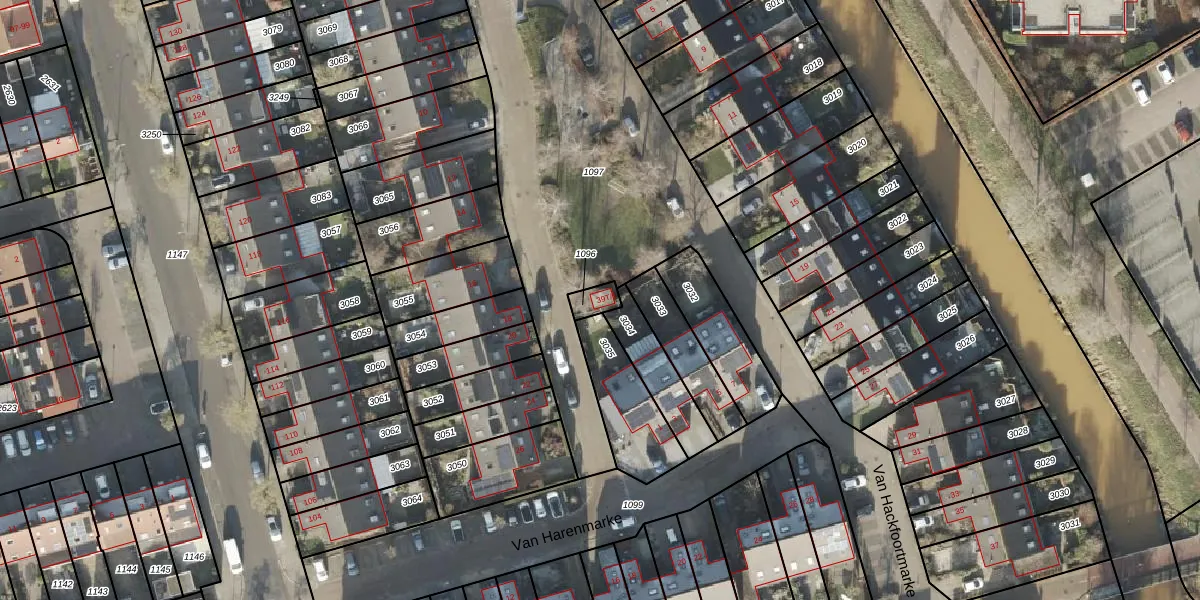 Gebruik de zoekbalk of klik op een perceel voor informatie over de adressen binnen dit perceel.