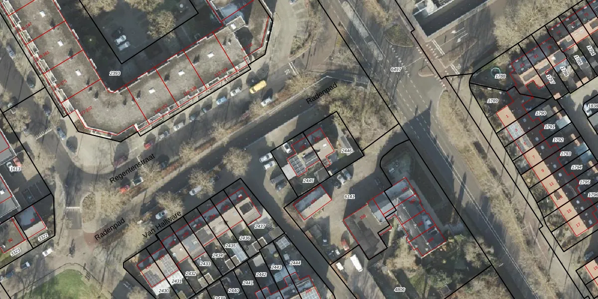 Gebruik de zoekbalk of klik op een perceel voor informatie over de adressen binnen dit perceel.