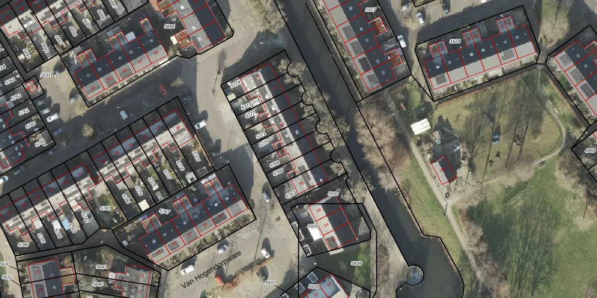 Gebruik de zoekbalk of klik op een perceel voor informatie over de adressen binnen dit perceel.