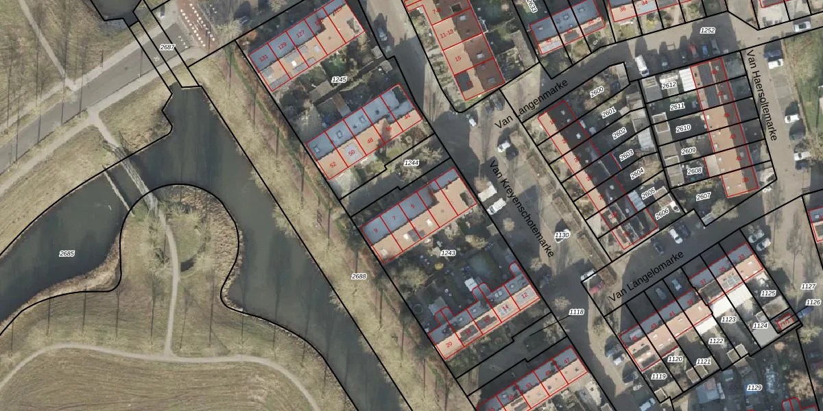 Het perceel waarop Van Langenmarke 5 staat heeft een oppervlakte van 1311 m². Dit is een zeer groot perceel. De perceeloppervlakte wordt geregistreerd door het Kadaster. Gedetailleerde informatie over de maten van dit perceel kunt u vinden in het rapport Kadastrale kaart met maatvoering van Van Langenmarke 5.