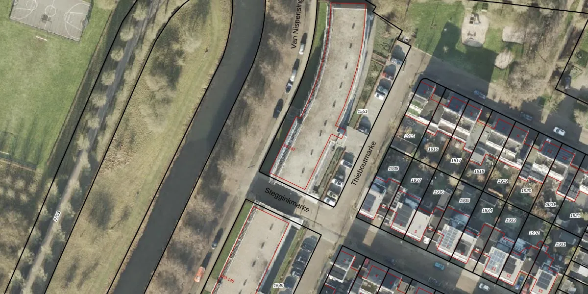Het perceel waarop Van Nispensingel 87 staat heeft een oppervlakte van 1966 m². Dit is een zeer groot perceel. De perceeloppervlakte wordt geregistreerd door het Kadaster. Gedetailleerde informatie over de maten van dit perceel kunt u vinden in het rapport Kadastrale kaart met maatvoering van Van Nispensingel 87.