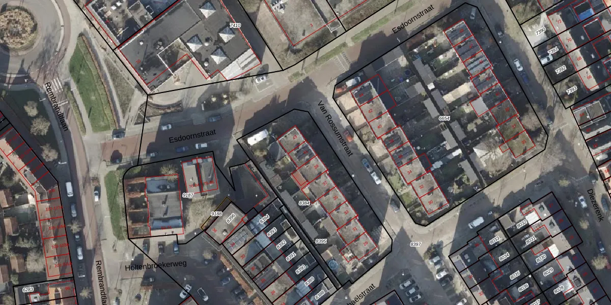 Het perceel waarop Van Rossumstraat 41 staat heeft een oppervlakte van 1339 m². Dit is een zeer groot perceel. De perceeloppervlakte wordt geregistreerd door het Kadaster. Gedetailleerde informatie over de maten van dit perceel kunt u vinden in het rapport Kadastrale kaart met maatvoering van Van Rossumstraat 41.
