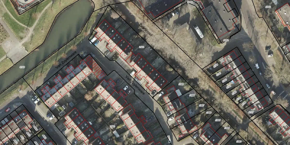 Van Zuylenware 15 is gelegen op kadastraal perceel ZLE00L2561. Deze kadastrale aanduiding is uniek en wordt gebruikt door het Kadaster om eigendomsrechten en andere zakelijke rechten vast te leggen. Het perceel maakt onderdeel uit van de kadastrale gemeente Zwolle.