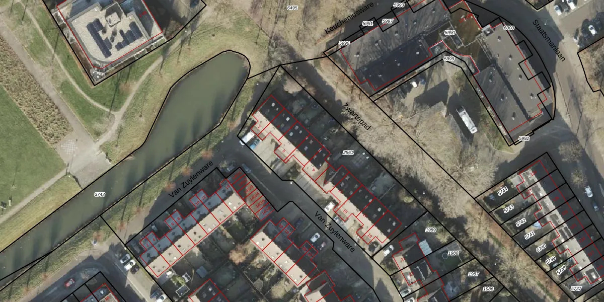 Van Zuylenware 7 is gelegen op kadastraal perceel ZLE00L2561. Deze kadastrale aanduiding is uniek en wordt gebruikt door het Kadaster om eigendomsrechten en andere zakelijke rechten vast te leggen. Het perceel maakt onderdeel uit van de kadastrale gemeente Zwolle.