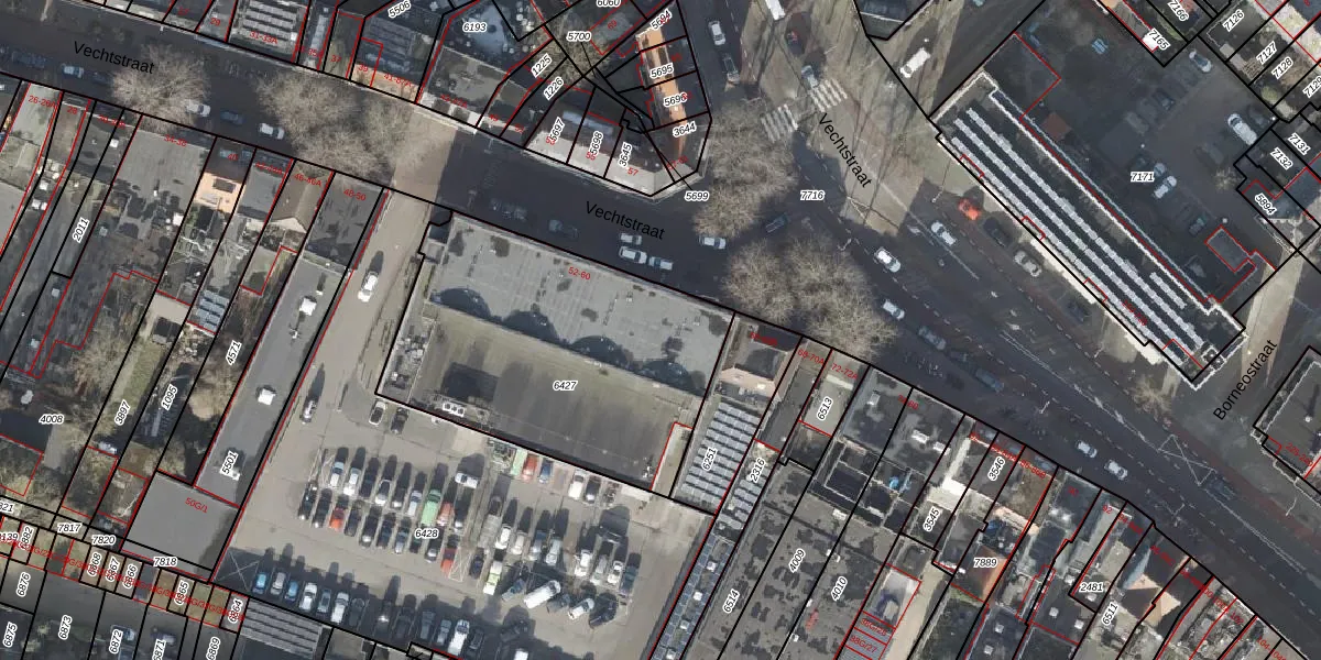 Het perceel waarop Vechtstraat 58-F staat heeft een oppervlakte van 1420 m². Dit is een zeer groot perceel. De perceeloppervlakte wordt geregistreerd door het Kadaster. Gedetailleerde informatie over de maten van dit perceel kunt u vinden in het rapport Kadastrale kaart met maatvoering van Vechtstraat 58-F.