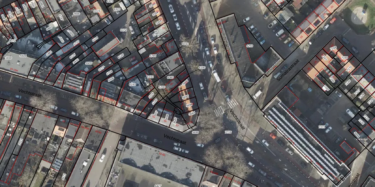 Het perceel waarop Vechtstraat 65-A staat heeft een oppervlakte van 65 m². Dit is een klein perceel. De perceeloppervlakte wordt geregistreerd door het Kadaster. Gedetailleerde informatie over de maten van dit perceel kunt u vinden in het rapport Kadastrale kaart met maatvoering van Vechtstraat 65-A.
