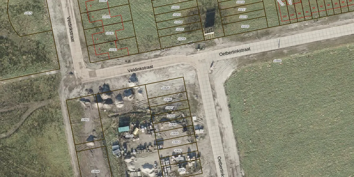 Het perceel waarop Veldinkstraat 1 staat heeft een oppervlakte van 182 m². Dit is een middelgroot perceel. De perceeloppervlakte wordt geregistreerd door het Kadaster. Gedetailleerde informatie over de maten van dit perceel kunt u vinden in het rapport Kadastrale kaart met maatvoering van Veldinkstraat 1.