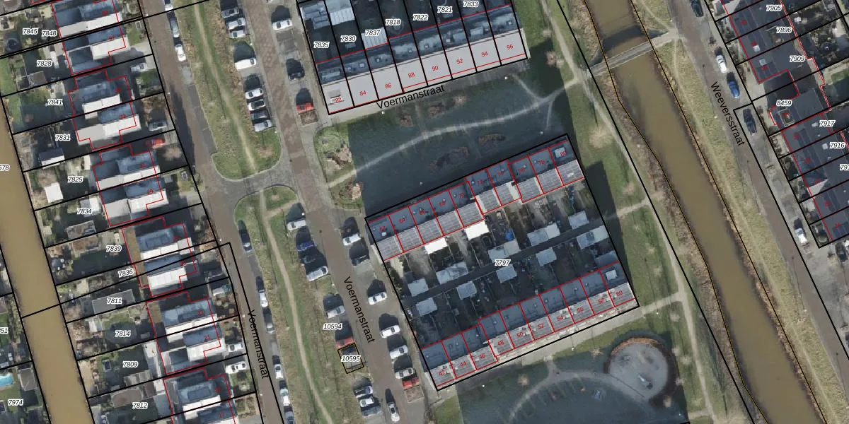 Het perceel waarop Voermanstraat 66 staat heeft een oppervlakte van 2273 m². Dit is een zeer groot perceel. De perceeloppervlakte wordt geregistreerd door het Kadaster. Gedetailleerde informatie over de maten van dit perceel kunt u vinden in het rapport Kadastrale kaart met maatvoering van Voermanstraat 66.