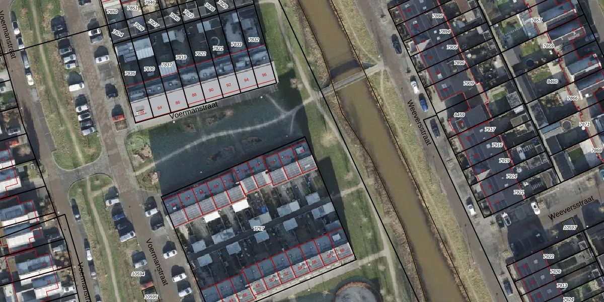 Het perceel waarop Voermanstraat 80 staat heeft een oppervlakte van 2273 m². Dit is een zeer groot perceel. De perceeloppervlakte wordt geregistreerd door het Kadaster. Gedetailleerde informatie over de maten van dit perceel kunt u vinden in het rapport Kadastrale kaart met maatvoering van Voermanstraat 80.