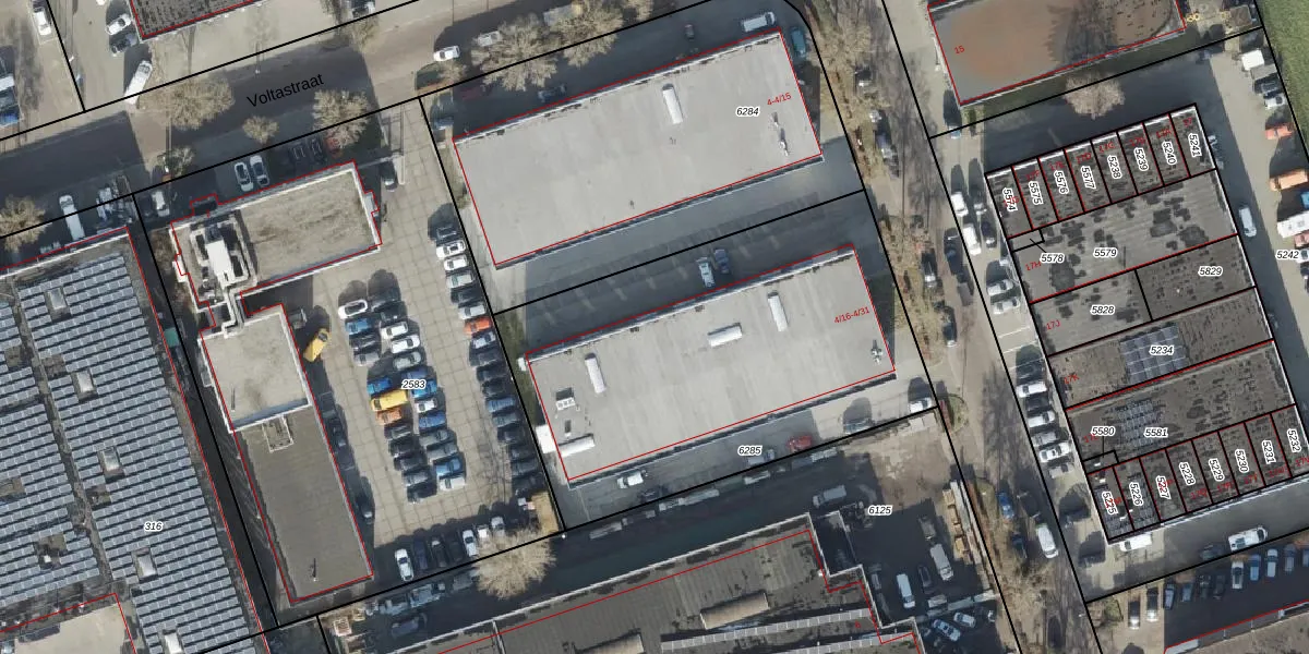 Het perceel waarop Voltastraat 4-20 staat heeft een oppervlakte van 2093 m². Dit is een zeer groot perceel. De perceeloppervlakte wordt geregistreerd door het Kadaster. Gedetailleerde informatie over de maten van dit perceel kunt u vinden in het rapport Kadastrale kaart met maatvoering van Voltastraat 4-20.