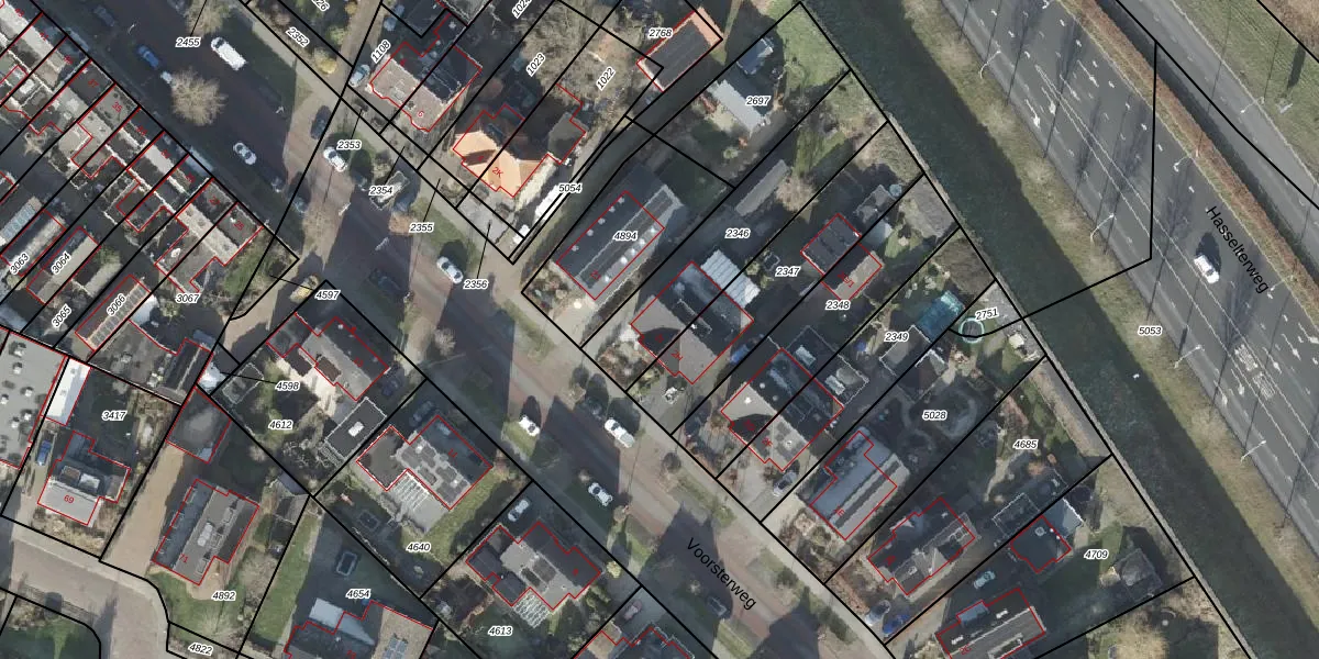 Het perceel waarop Voorsterweg 2-I staat heeft een oppervlakte van 552 m². Dit is een groot perceel. De perceeloppervlakte wordt geregistreerd door het Kadaster. Gedetailleerde informatie over de maten van dit perceel kunt u vinden in het rapport Kadastrale kaart met maatvoering van Voorsterweg 2-I.
