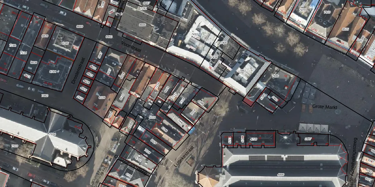 Het perceel waarop Voorstraat 1 staat heeft een oppervlakte van 93 m². Dit is een klein perceel. De perceeloppervlakte wordt geregistreerd door het Kadaster. Gedetailleerde informatie over de maten van dit perceel kunt u vinden in het rapport Kadastrale kaart met maatvoering van Voorstraat 1.