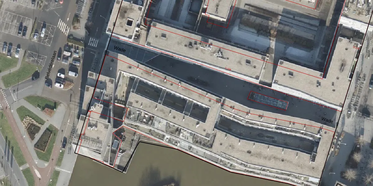 Het perceel waarop Wade 21 staat heeft een oppervlakte van 1,6 ha. Dit is een zeer groot perceel. De perceeloppervlakte wordt geregistreerd door het Kadaster. Gedetailleerde informatie over de maten van dit perceel kunt u vinden in het rapport Kadastrale kaart met maatvoering van Wade 21.