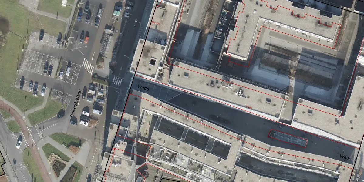 Het perceel waarop Wade 32 staat heeft een oppervlakte van 1,6 ha. Dit is een zeer groot perceel. De perceeloppervlakte wordt geregistreerd door het Kadaster. Gedetailleerde informatie over de maten van dit perceel kunt u vinden in het rapport Kadastrale kaart met maatvoering van Wade 32.