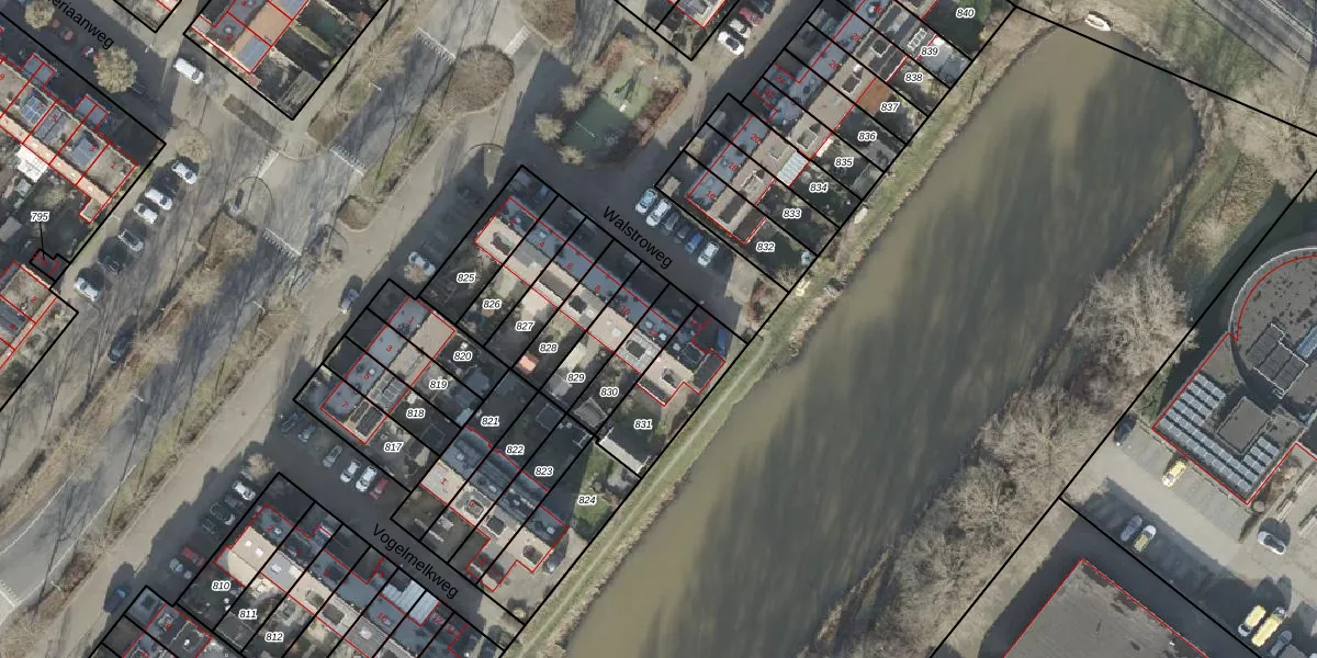 Gebruik de zoekbalk of klik op een perceel voor informatie over de adressen binnen dit perceel.