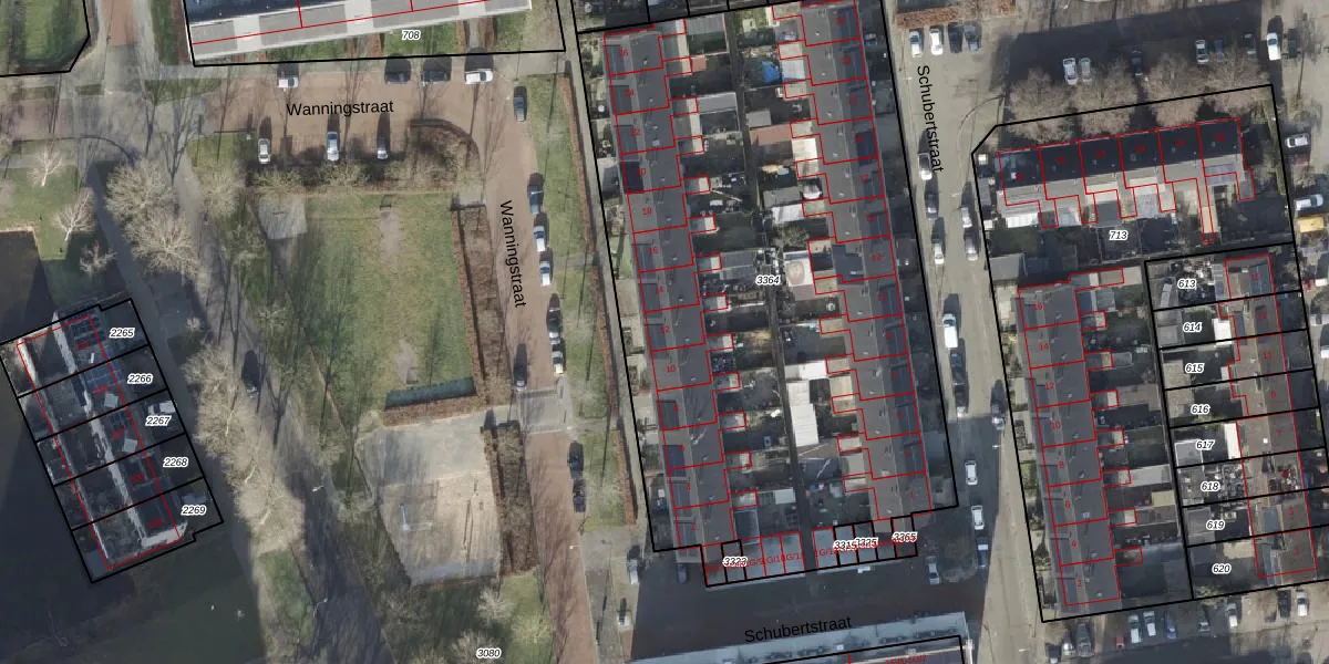 Het perceel waarop Wanningstraat 12 staat heeft een oppervlakte van 3756 m². Dit is een zeer groot perceel. De perceeloppervlakte wordt geregistreerd door het Kadaster. Gedetailleerde informatie over de maten van dit perceel kunt u vinden in het rapport Kadastrale kaart met maatvoering van Wanningstraat 12.