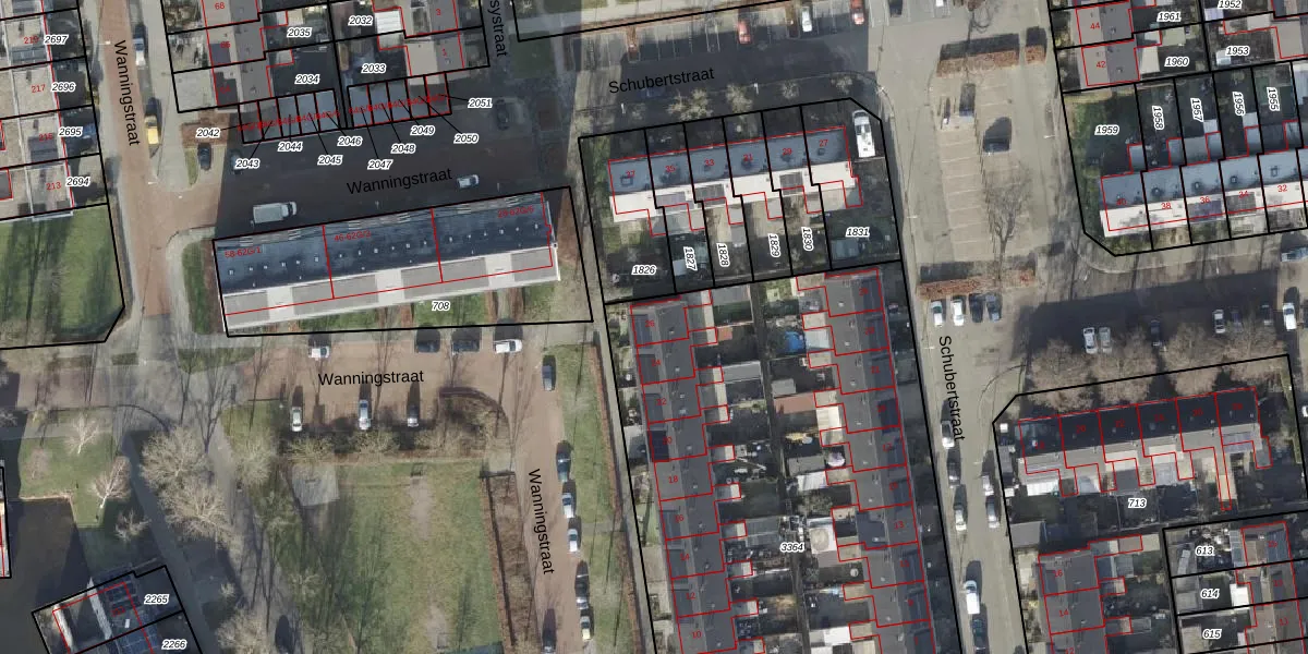 Het perceel waarop Wanningstraat 26 staat heeft een oppervlakte van 3756 m². Dit is een zeer groot perceel. De perceeloppervlakte wordt geregistreerd door het Kadaster. Gedetailleerde informatie over de maten van dit perceel kunt u vinden in het rapport Kadastrale kaart met maatvoering van Wanningstraat 26.