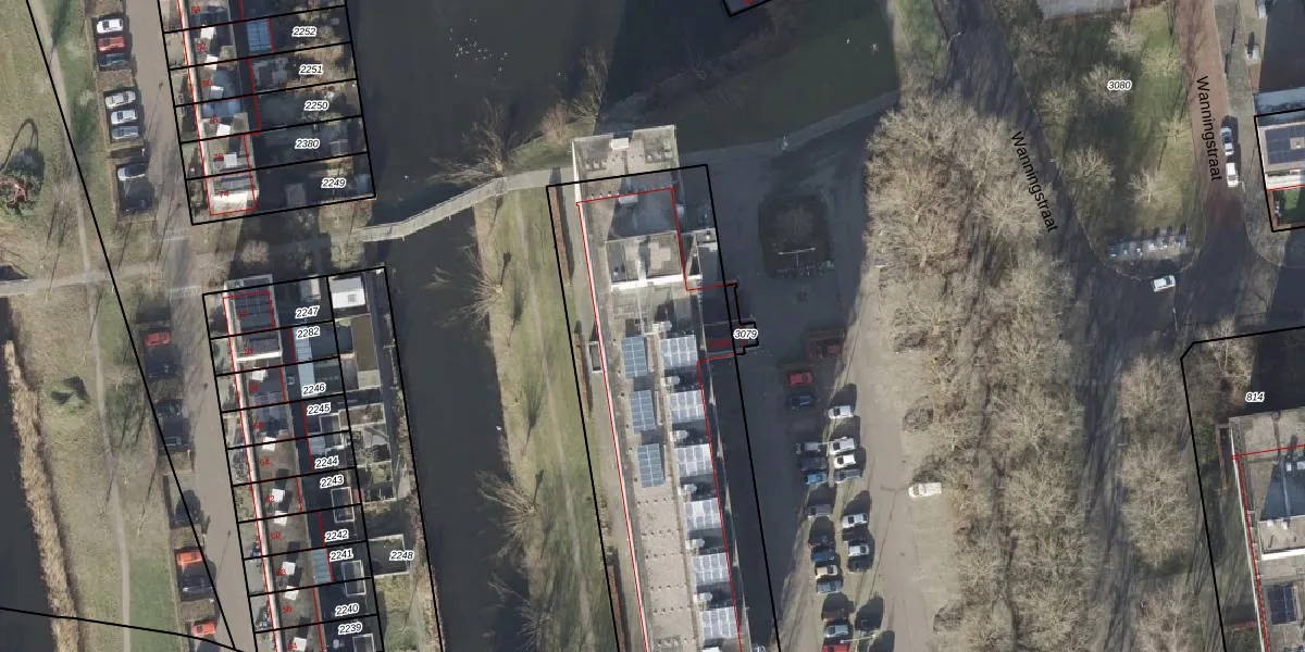 Het perceel waarop Wanningstraat 63 staat heeft een oppervlakte van 2680 m². Dit is een zeer groot perceel. De perceeloppervlakte wordt geregistreerd door het Kadaster. Gedetailleerde informatie over de maten van dit perceel kunt u vinden in het rapport Kadastrale kaart met maatvoering van Wanningstraat 63.