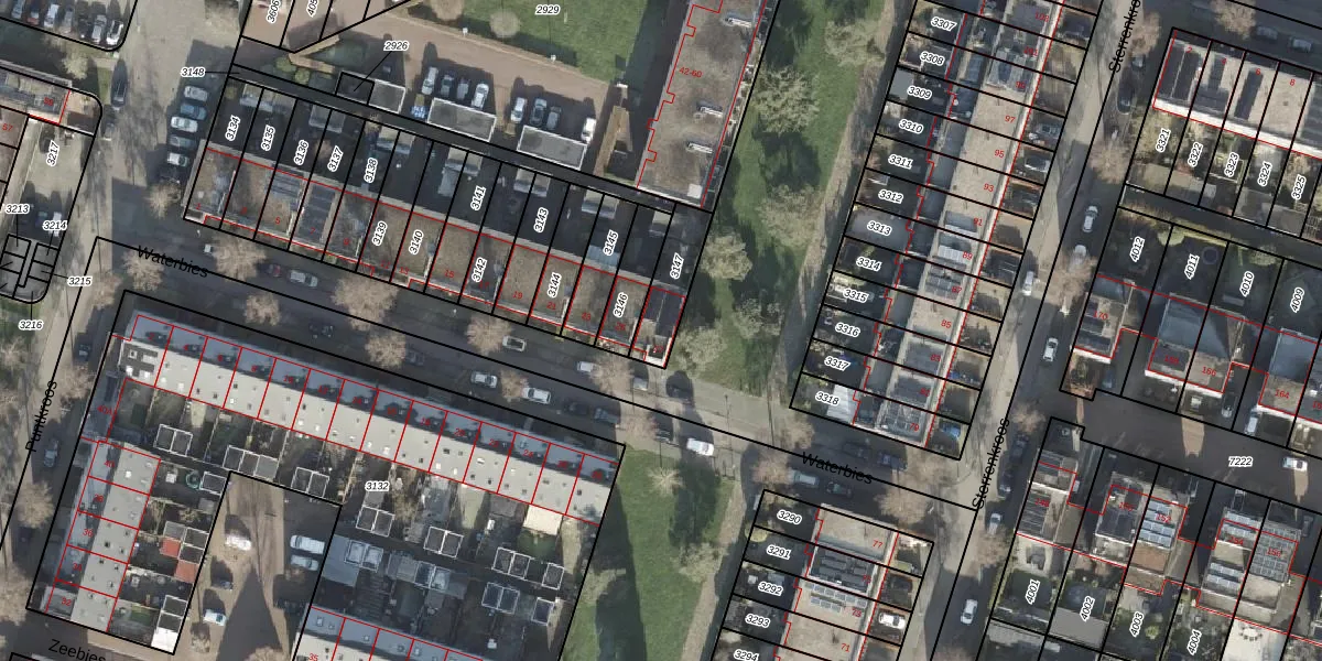 Gebruik de zoekbalk of klik op een perceel voor informatie over de adressen binnen dit perceel.