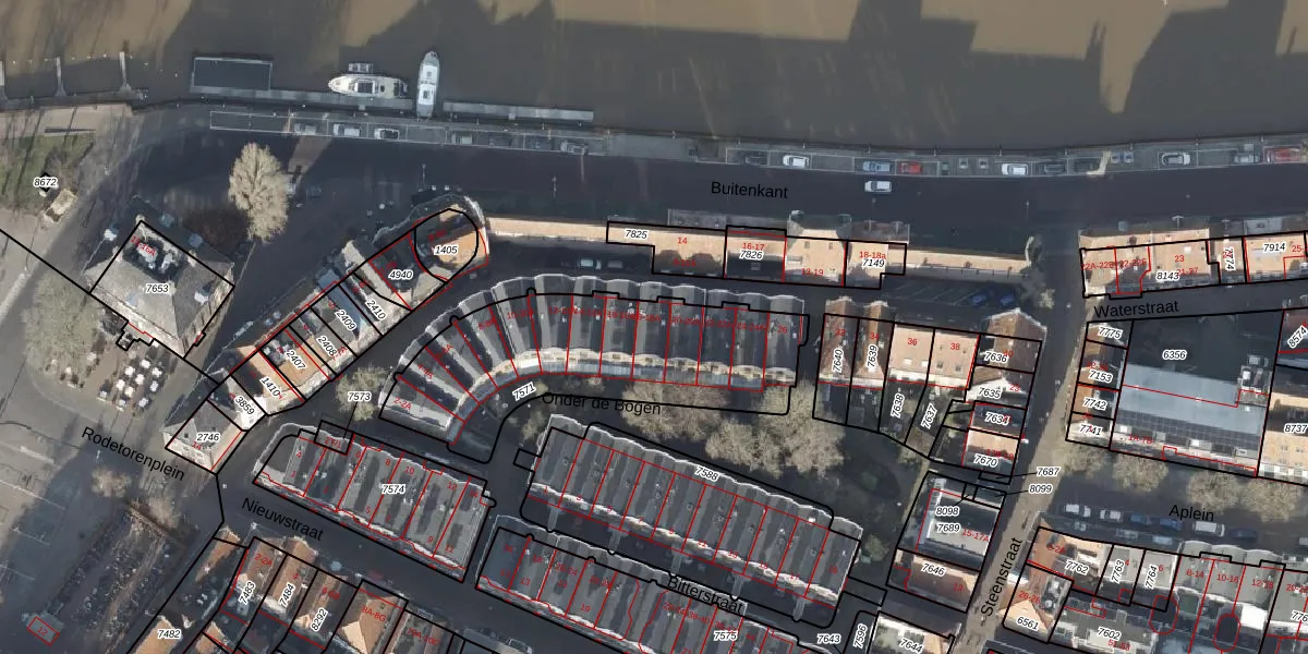 Het perceel waarop Waterstraat 18 staat heeft een oppervlakte van 1019 m². Dit is een zeer groot perceel. De perceeloppervlakte wordt geregistreerd door het Kadaster. Gedetailleerde informatie over de maten van dit perceel kunt u vinden in het rapport Kadastrale kaart met maatvoering van Waterstraat 18.