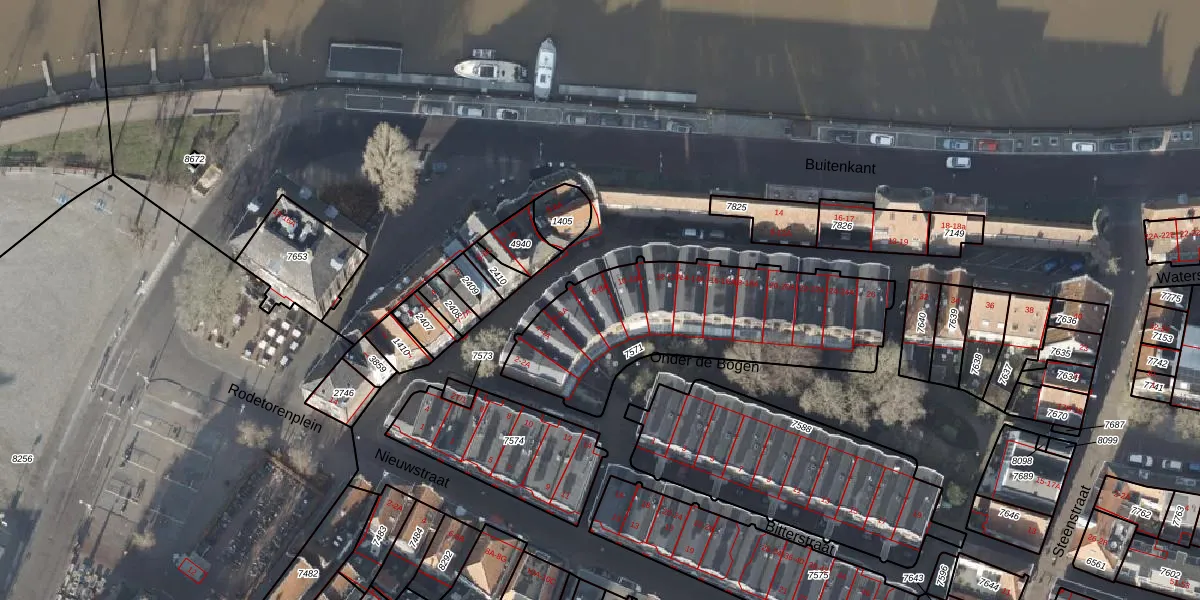 Het perceel waarop Waterstraat 8 staat heeft een oppervlakte van 1019 m². Dit is een zeer groot perceel. De perceeloppervlakte wordt geregistreerd door het Kadaster. Gedetailleerde informatie over de maten van dit perceel kunt u vinden in het rapport Kadastrale kaart met maatvoering van Waterstraat 8.