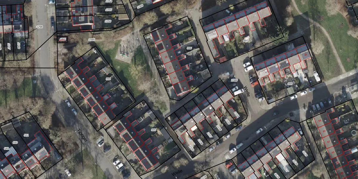 Het perceel waarop Welle 13 staat heeft een oppervlakte van 1038 m². Dit is een zeer groot perceel. De perceeloppervlakte wordt geregistreerd door het Kadaster. Gedetailleerde informatie over de maten van dit perceel kunt u vinden in het rapport Kadastrale kaart met maatvoering van Welle 13.