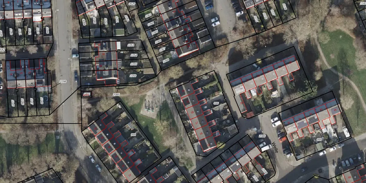 Het perceel waarop Welle 23 staat heeft een oppervlakte van 1038 m². Dit is een zeer groot perceel. De perceeloppervlakte wordt geregistreerd door het Kadaster. Gedetailleerde informatie over de maten van dit perceel kunt u vinden in het rapport Kadastrale kaart met maatvoering van Welle 23.