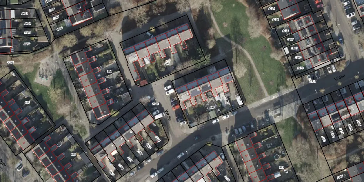 Het perceel waarop Welle 37 staat heeft een oppervlakte van 892 m². Dit is een groot perceel. De perceeloppervlakte wordt geregistreerd door het Kadaster. Gedetailleerde informatie over de maten van dit perceel kunt u vinden in het rapport Kadastrale kaart met maatvoering van Welle 37.