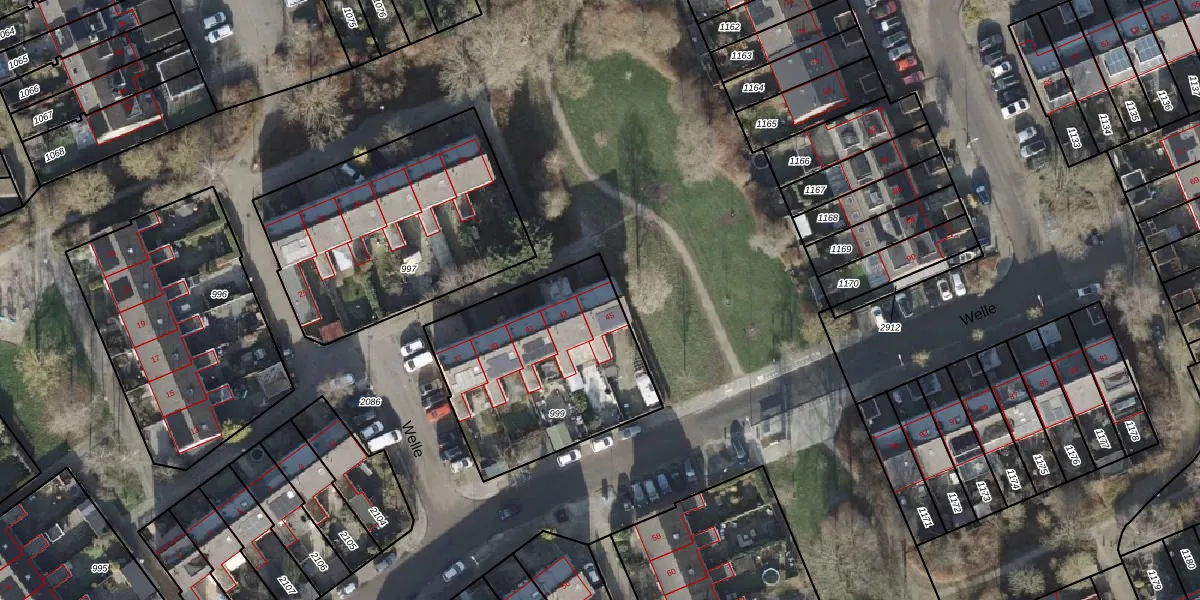 Het perceel waarop Welle 45 staat heeft een oppervlakte van 892 m². Dit is een groot perceel. De perceeloppervlakte wordt geregistreerd door het Kadaster. Gedetailleerde informatie over de maten van dit perceel kunt u vinden in het rapport Kadastrale kaart met maatvoering van Welle 45.