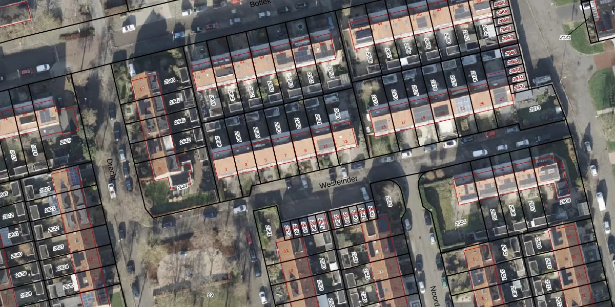 Westeinder 9 is gelegen op kadastraal perceel ZLE00I2682. Deze kadastrale aanduiding is uniek en wordt gebruikt door het Kadaster om eigendomsrechten en andere zakelijke rechten vast te leggen. Het perceel maakt onderdeel uit van de kadastrale gemeente Zwolle.