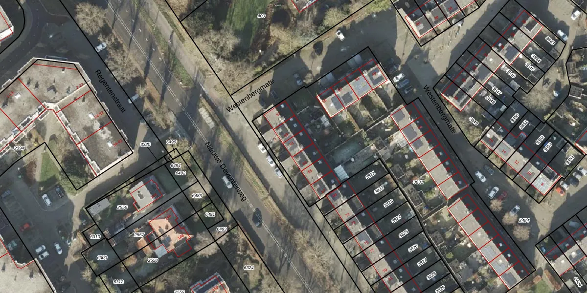 Het perceel waarop Westenbergmate 61 staat heeft een oppervlakte van 3082 m². Dit is een zeer groot perceel. De perceeloppervlakte wordt geregistreerd door het Kadaster. Gedetailleerde informatie over de maten van dit perceel kunt u vinden in het rapport Kadastrale kaart met maatvoering van Westenbergmate 61.