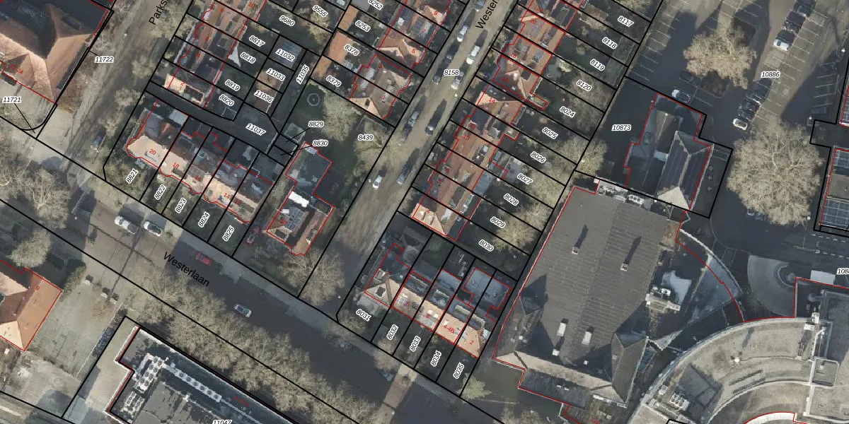 Gebruik de zoekbalk of klik op een perceel voor informatie over de adressen binnen dit perceel.
