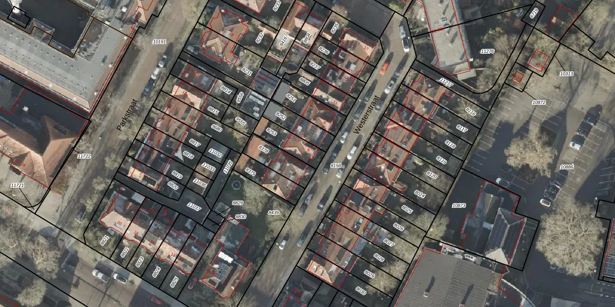 Gebruik de zoekbalk of klik op een perceel voor informatie over de adressen binnen dit perceel.
