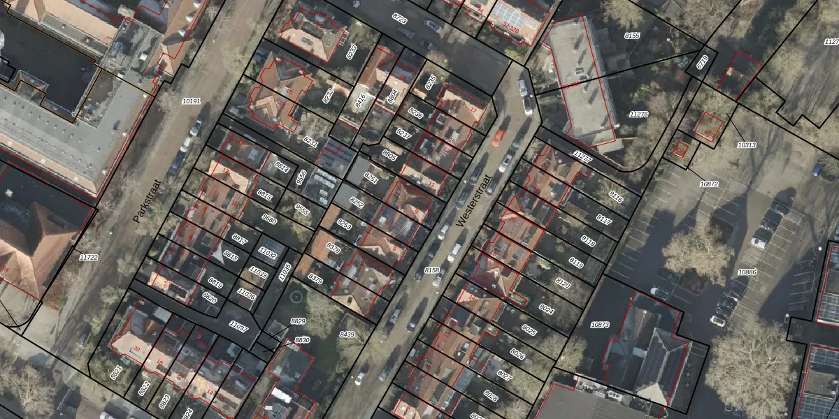 Gebruik de zoekbalk of klik op een perceel voor informatie over de adressen binnen dit perceel.