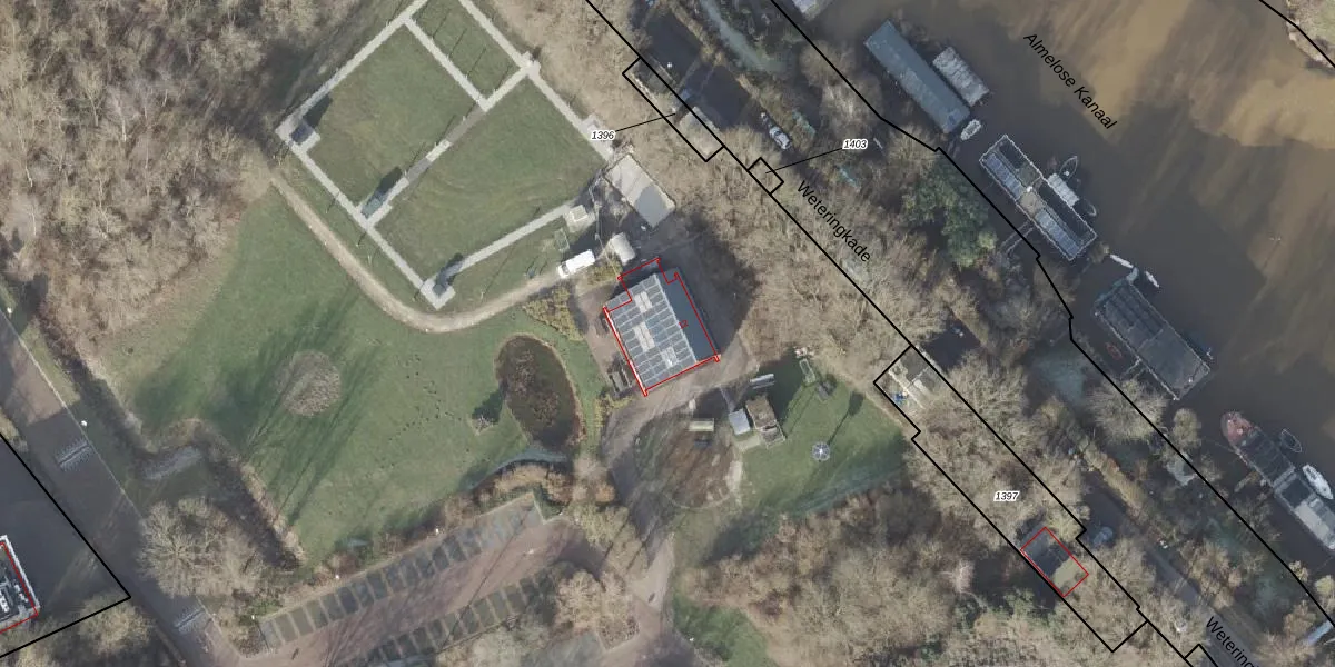 Het perceel waarop Weteringkade 12 staat heeft een oppervlakte van 9,4 ha. Dit is een zeer groot perceel. De perceeloppervlakte wordt geregistreerd door het Kadaster. Gedetailleerde informatie over de maten van dit perceel kunt u vinden in het rapport Kadastrale kaart met maatvoering van Weteringkade 12.