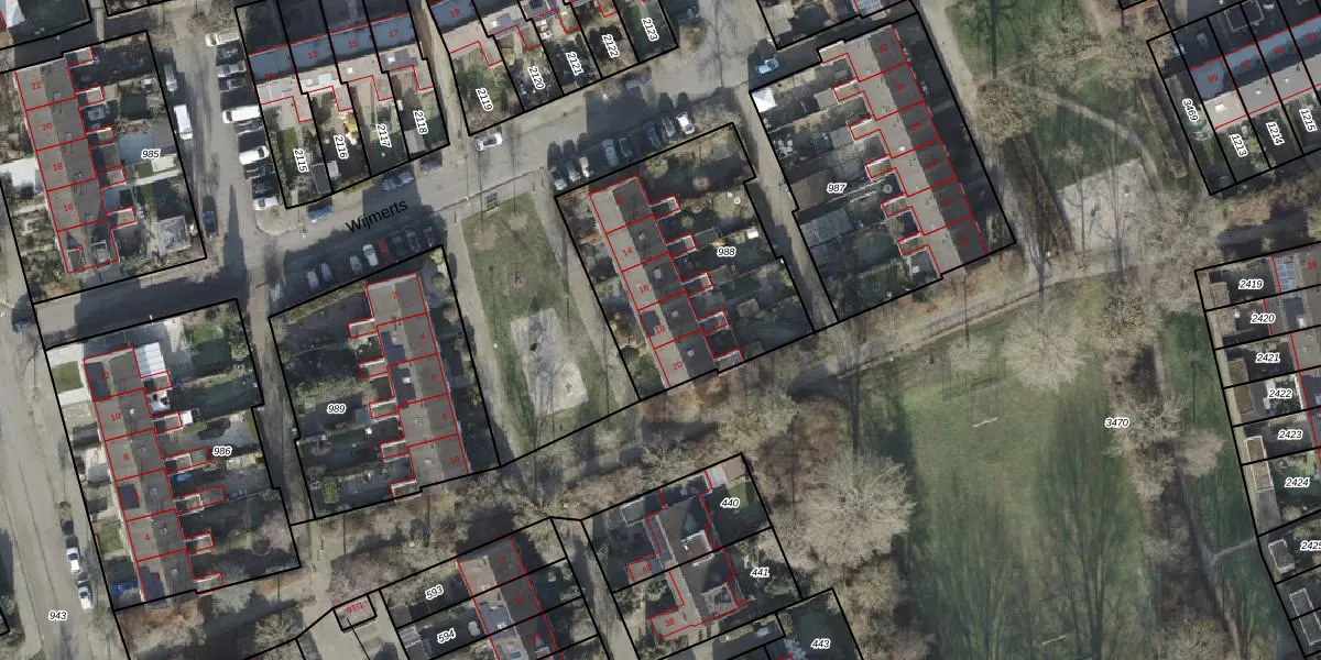 Het perceel waarop Wijmerts 18 staat heeft een oppervlakte van 950 m². Dit is een groot perceel. De perceeloppervlakte wordt geregistreerd door het Kadaster. Gedetailleerde informatie over de maten van dit perceel kunt u vinden in het rapport Kadastrale kaart met maatvoering van Wijmerts 18.