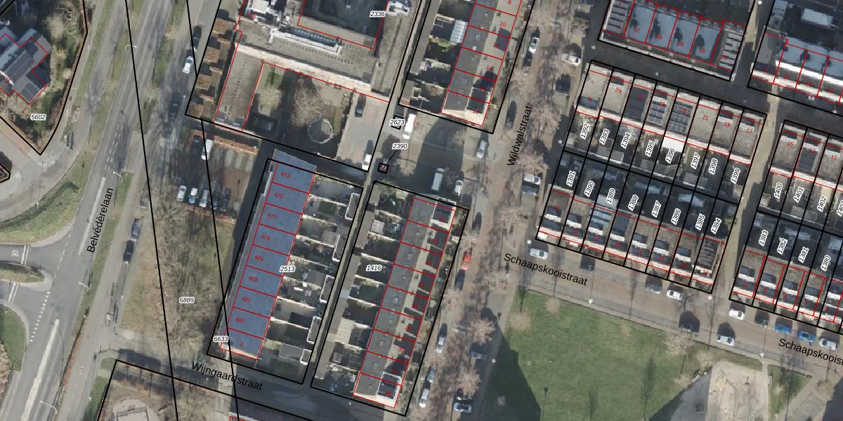 Het perceel waarop Wildwalstraat 20 staat heeft een oppervlakte van 1202 m². Dit is een zeer groot perceel. De perceeloppervlakte wordt geregistreerd door het Kadaster. Gedetailleerde informatie over de maten van dit perceel kunt u vinden in het rapport Kadastrale kaart met maatvoering van Wildwalstraat 20.