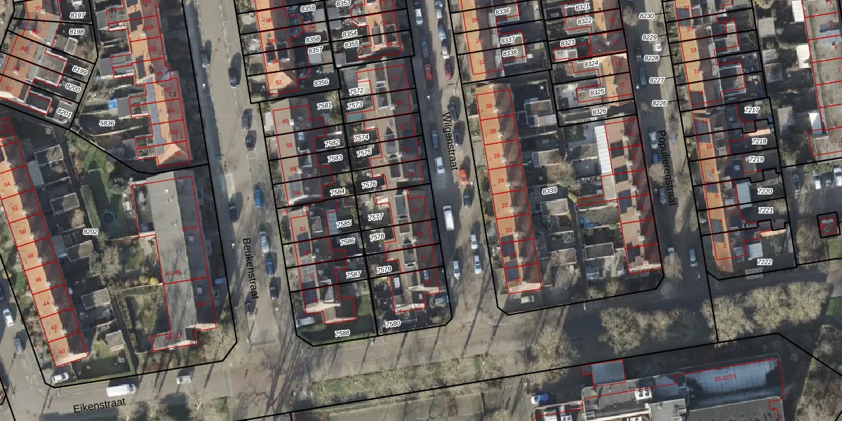 Gebruik de zoekbalk of klik op een perceel voor informatie over de adressen binnen dit perceel.