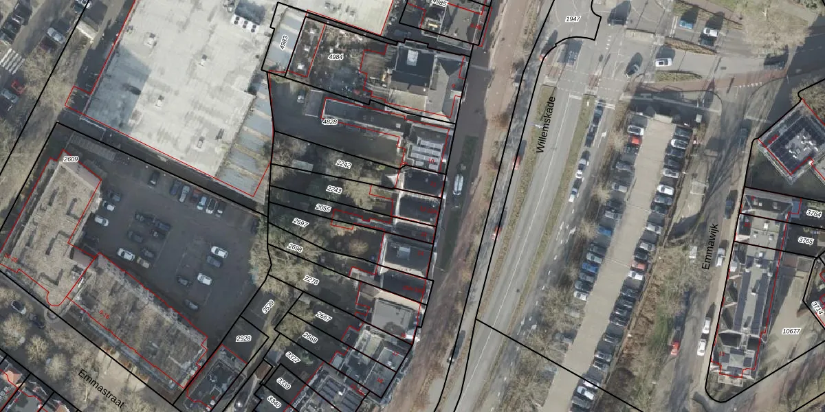 Het perceel waarop Willemskade 12-A staat heeft een oppervlakte van 260 m². Dit is een middelgroot perceel. De perceeloppervlakte wordt geregistreerd door het Kadaster. Gedetailleerde informatie over de maten van dit perceel kunt u vinden in het rapport Kadastrale kaart met maatvoering van Willemskade 12-A.