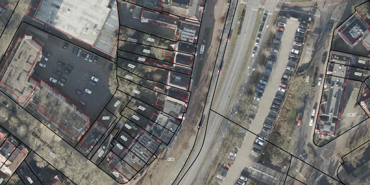 Het perceel waarop Willemskade 15-A staat heeft een oppervlakte van 215 m². Dit is een middelgroot perceel. De perceeloppervlakte wordt geregistreerd door het Kadaster. Gedetailleerde informatie over de maten van dit perceel kunt u vinden in het rapport Kadastrale kaart met maatvoering van Willemskade 15-A.