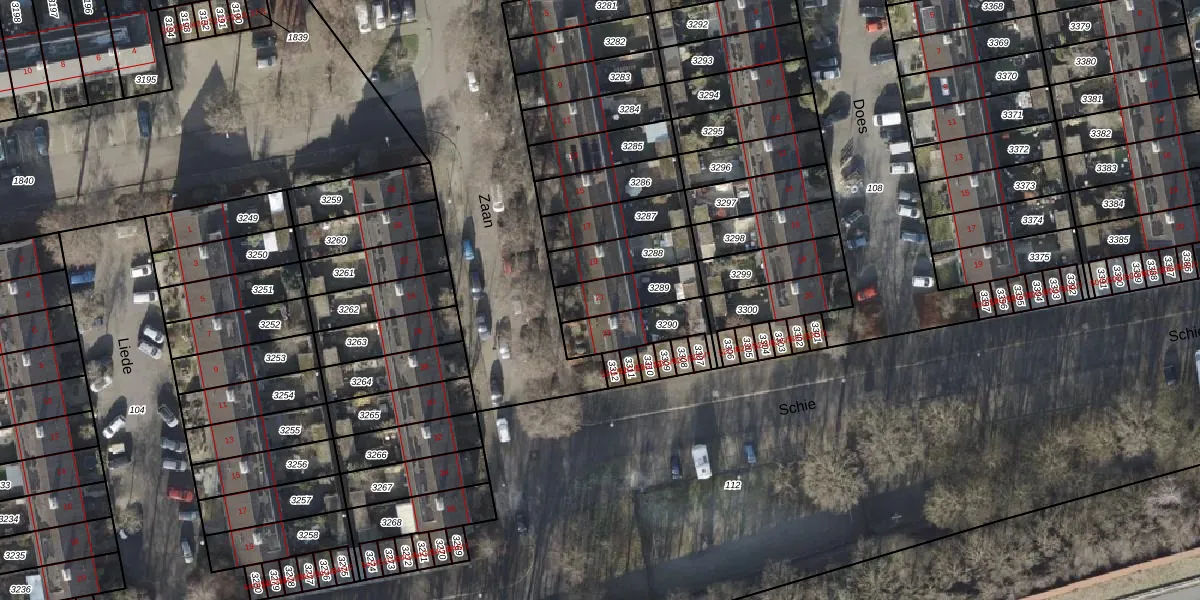 Gebruik de zoekbalk of klik op een perceel voor informatie over de adressen binnen dit perceel.