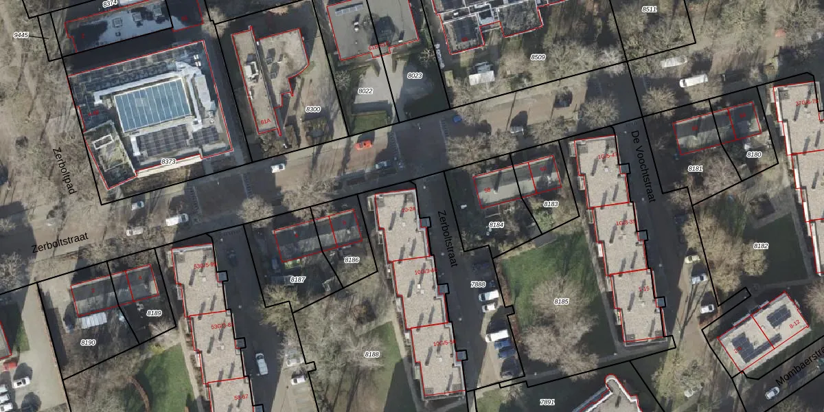 Het perceel waarop Zerboltstraat 14 staat heeft een oppervlakte van 2284 m². Dit is een zeer groot perceel. De perceeloppervlakte wordt geregistreerd door het Kadaster. Gedetailleerde informatie over de maten van dit perceel kunt u vinden in het rapport Kadastrale kaart met maatvoering van Zerboltstraat 14.